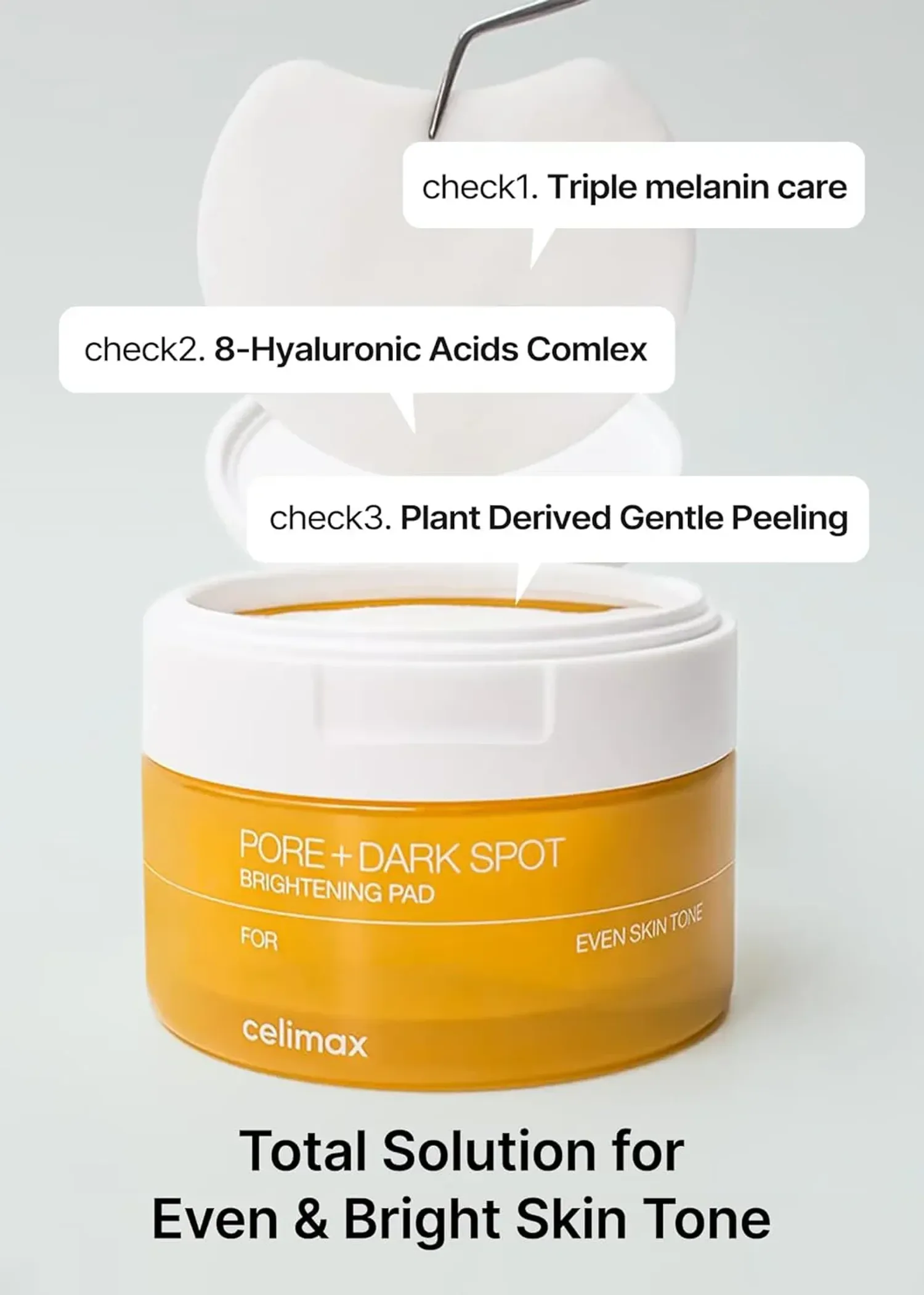 Арьсан дээрх нөсөө толбыг бүдгэрүүлж, нүхжилтийг агшааж, бүр хамгийн гоё нь цайруулах үйлчилгээтэй падь таны арьсны асуудлыг төгс шийднэ. Хамгийн гол нь найрлагадаа Транексамын хүчил, Ниацинамид, Мелазеро V2-ийг агуулсан тул арьсанд нөсөө үүсгэх меланоцит эсээс ялгардаг меланиныг задалж цайруулан арьсны өнгийг жигд болгож нүхжилтийг агшаадгаараа онцлогтой. Өглөө орой нүүрээ цэвэрлэсний дараа дух, эрүү, хацар болон нүүрний бусад хэсгүүддээ падийг 3-5 минут тавьж болон арчиж хэрэглэнэ.