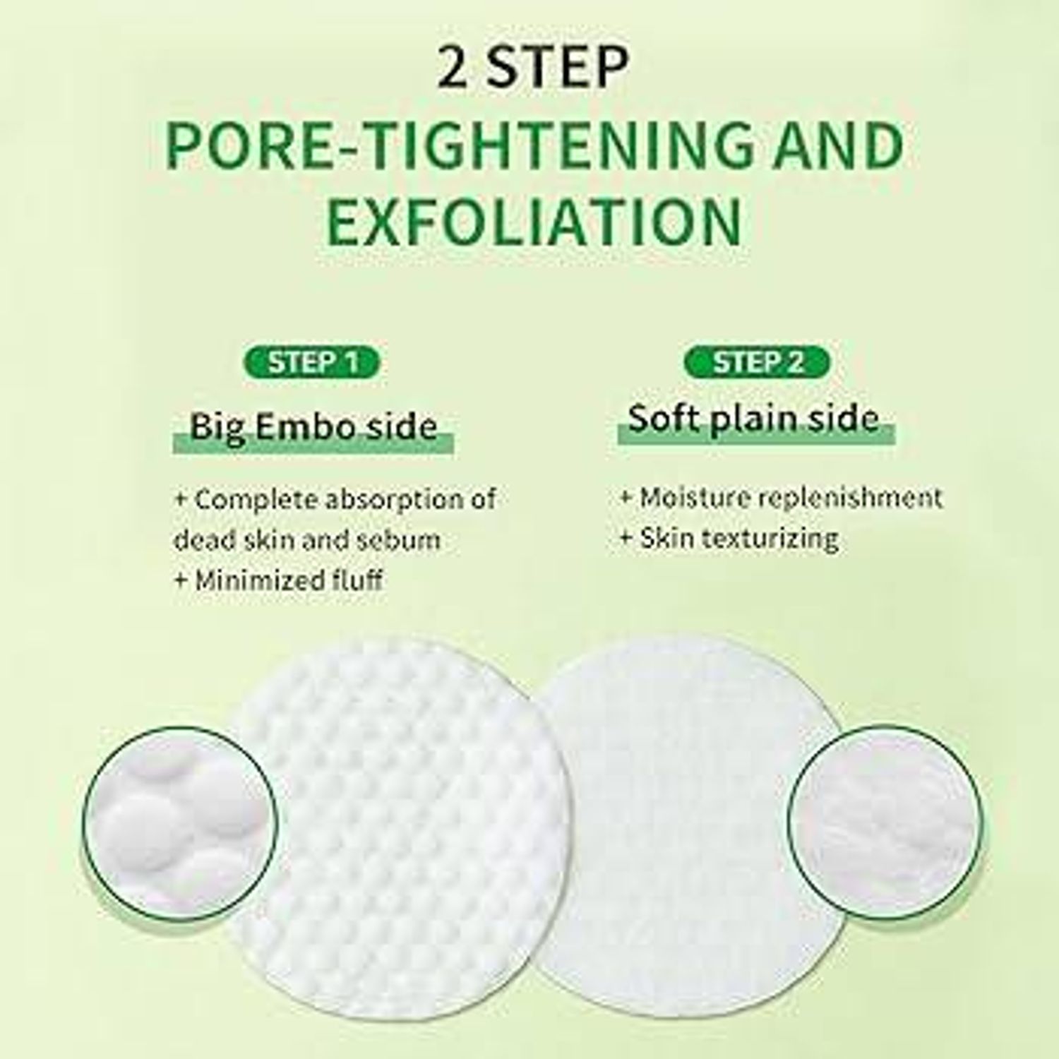 Арьсыг тайвшруулж, торгомсог толигор, тунгалаг болгож зөөлөн гуужуулах зориулалттай пад нь урагдахгүй, сунахгүй сайн чанарын хөвөн даавуугаар хийгдсэн.. Найрлагадаа эмзэг арьсанд ч хэрэглэж болох харшил, эмзэгшилт үүсгэдэггүй PHA, LHA химийн хүчил агуулсан бөгөөд арьсны үхэжсэн эд эс, илүүдэл бохирдлыг зөөлнөөр арилгана. Тослогийг давхар хянана. Нүхийг цэвэрлэж, чангалах үйлчилгээгээрээ патентлагдсан Anti Sebum P найрлага нь арьсны нүх сүвийг үр дүнтэй чангална. Центелла Азиатика найрлага нь арьсыг тайвшруулж, чийгшүүлснээр эрүүл, толигор арьстай болоход тусална. Арьсыг гүн чийгшүүлж, давхар бүтцийг нь сайжруулах хоёр талаар нь ашиглах зориулалттай тонер пад нь ВЕГАН бүтээгдэхүүн юм.