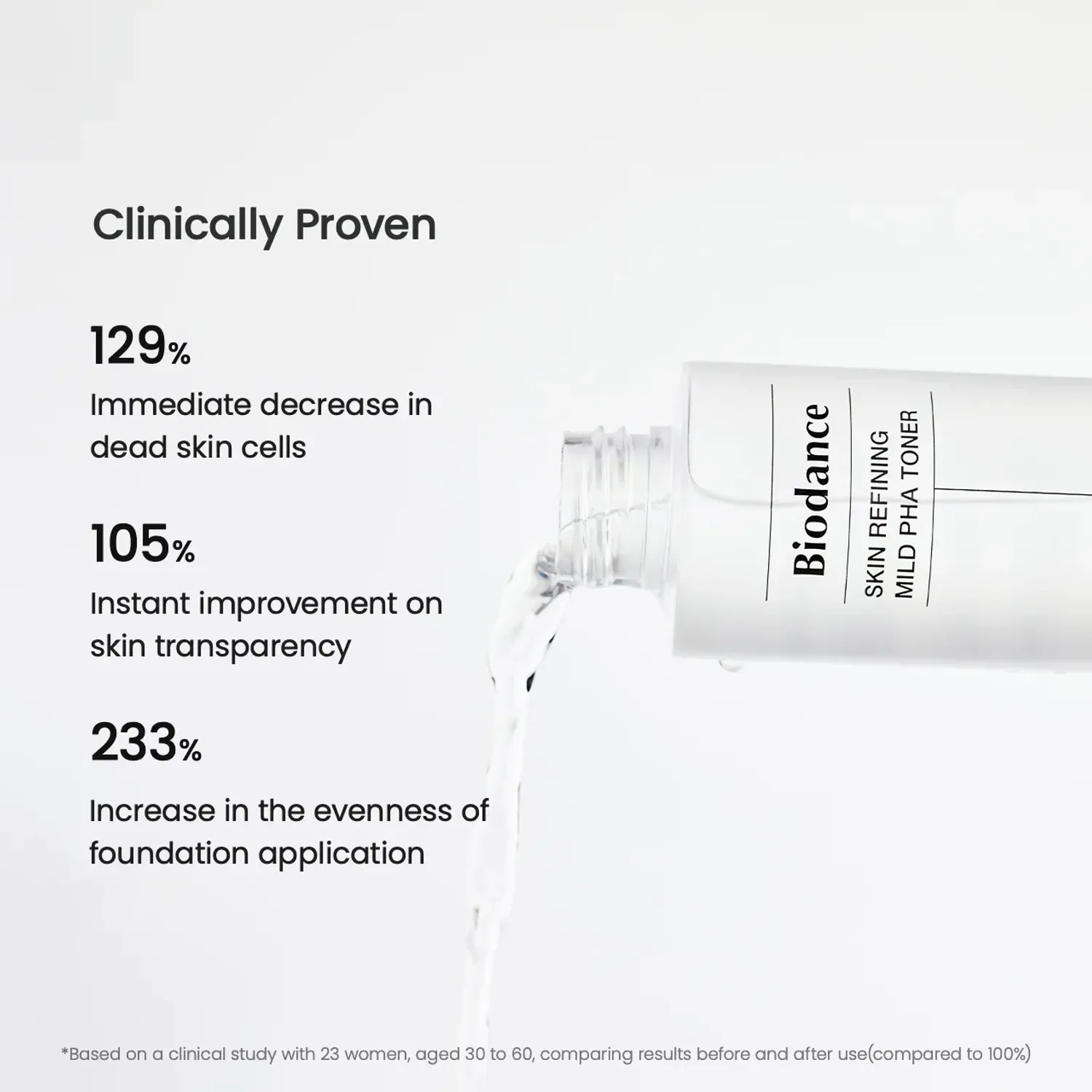 Biodance Skin Refining Mild PHA Toner нь арьсыг цочроохгүйгээр үхэжсэн эсийг гуужуулж, бүтэцийг сайжруулах зорилготой зөөлөн, чийгшүүлэгч тонер бөгөөд мэдрэмтгий арьсанд ч тохиромжтой. 8% PHA болон 5 давхар церамидын комплекс агуулснаар арьсны хамгаалах давхаргыг дэмжиж, чийгийг хадгална.