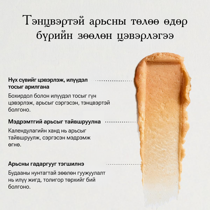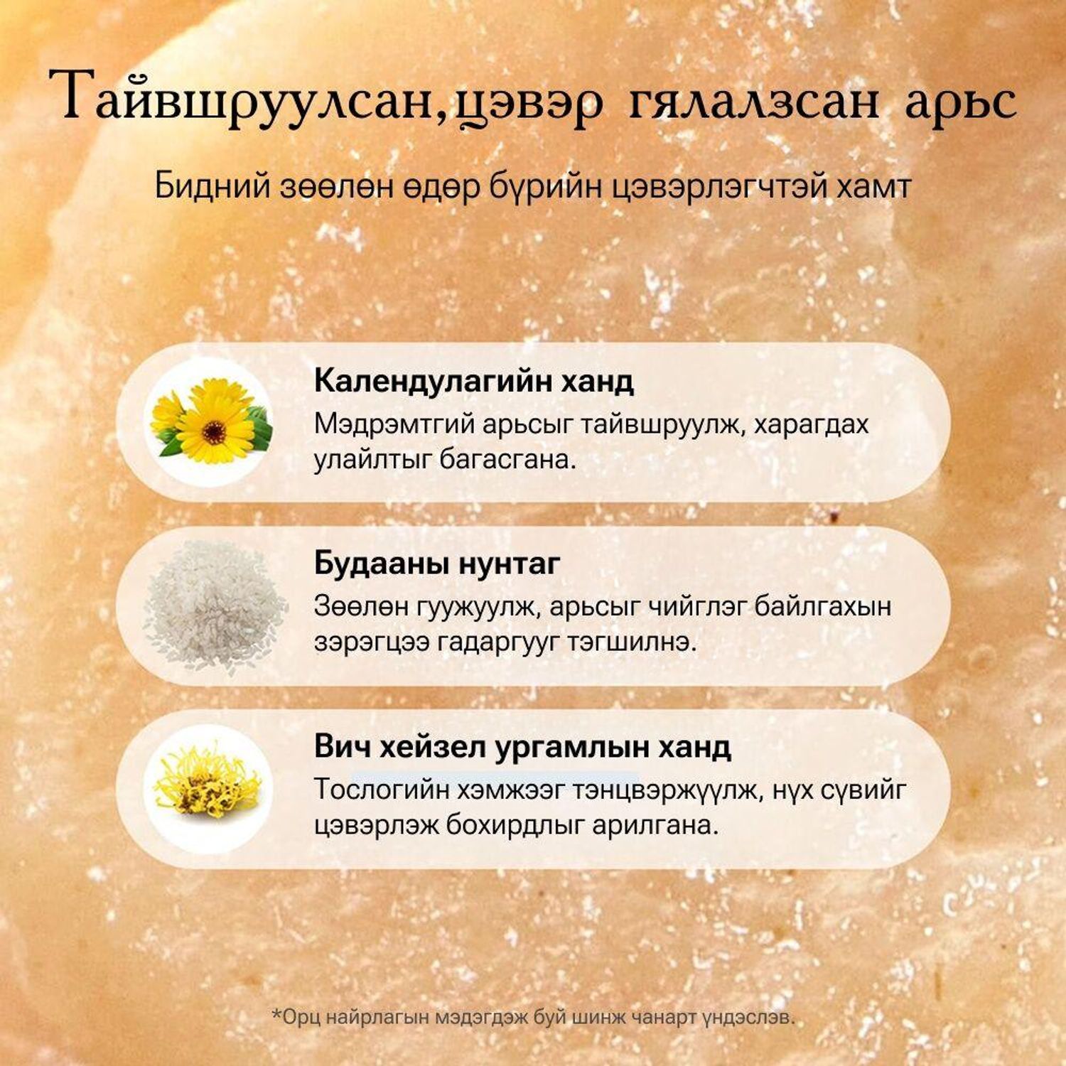 Усанд норгосон арьсандаа бүтээгдэхүүнийг түрхэж, зөөлөн иллэг хийнэ.