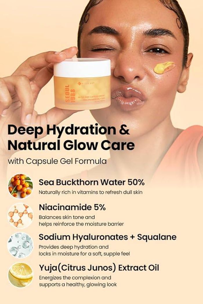K-SECRET-ийн Seoul 1988 Capsule Cream нь арьсыг гэрэлтүүлэх, тэнцвэртэй болгох, чийгшүүлэх зориулалттай өдөр тутмын крем юм.