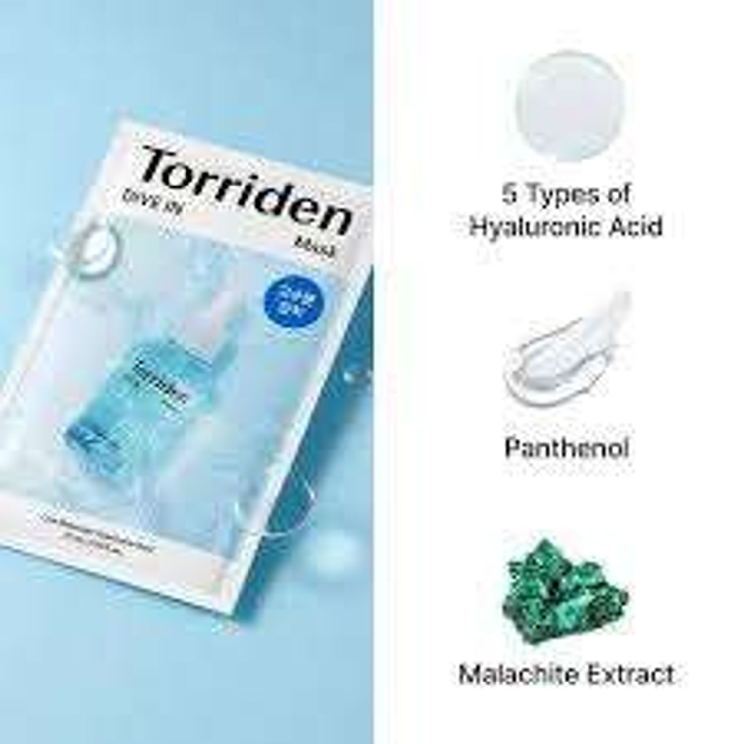 Torriden Dive In Mask нь арьсыг гүн чийгшүүлж, тайвшруулан, гэрэлтсэн төрхийг бий болгоход туслах өндөр чийгшүүлэгч маск юм. Энэхүү маск нь мэдрэмтгий арьсанд ч тохиромжтой бөгөөд өдөр тутмын арьс арчилгаанд хэрэглэж болно. Онцлох орц найрлага: 5D Hyaluronic Acid: Өргөн молекулын хэмжээтэй 5 төрлийн гиалуроны хүчил нь арьсны гадаргаас гүн давхаргад хүртэл чийгшүүлж, чийгийн алдагдлыг бууруулна.