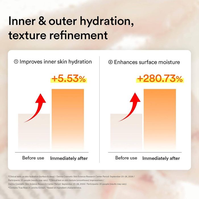 Jericho Rose extract — үндсэн орц; арьсыг гүн чийгшүүлж, сэргээх үйлчилгээтэй. Энэ орц нь арьсыг гүнээс нь чийгшүүлнэ.